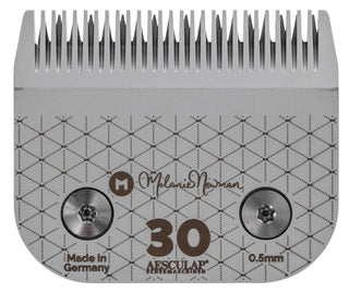 The Melanie Newman Clipper Blade Set is precision-engineered by Aesculap Schermaschinen in Germany, crafted to medical-grade standards from the finest carbon steel. Each blade is meticulously shaped, ground, and polished in over a dozen stages of production. These blades are not just cut in an automated factory. They are painstakingly crafted over hours of refinement and perfection by a team that has dedicated their careers to excellence to deliver the ultimate in professional performance: Consistent, clean, and effortless cutting every time.