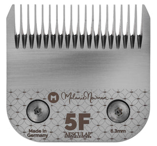 The Melanie Newman Clipper Blade Set is precision-engineered by Aesculap Schermaschinen in Germany, crafted to medical-grade standards from the finest carbon steel. Each blade is meticulously shaped, ground, and polished in over a dozen stages of production. These blades are not just cut in an automated factory. They are painstakingly crafted over hours of refinement and perfection by a team that has dedicated their careers to excellence to deliver the ultimate in professional performance: Consistent, clean, and effortless cutting every time.